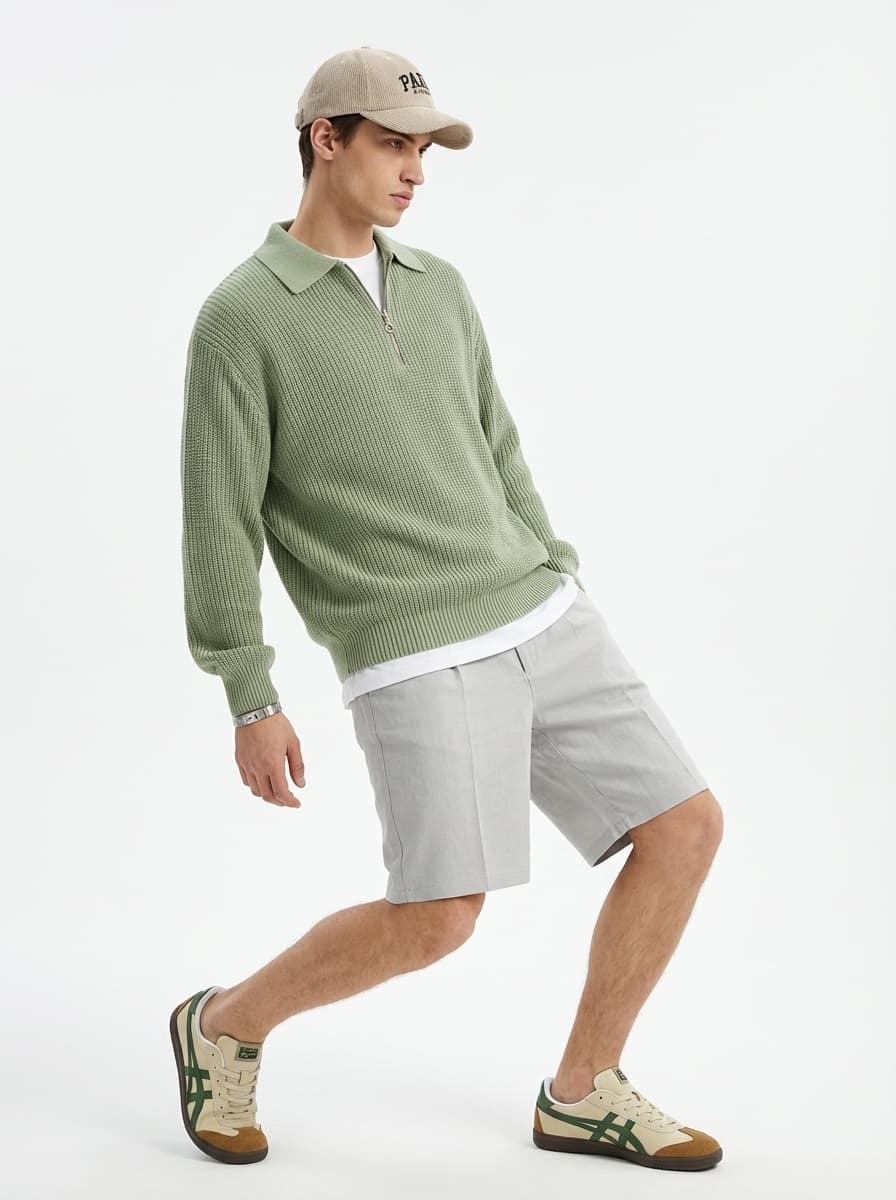 Свитер оверсайз теплый вязаный на молнии с воротником
