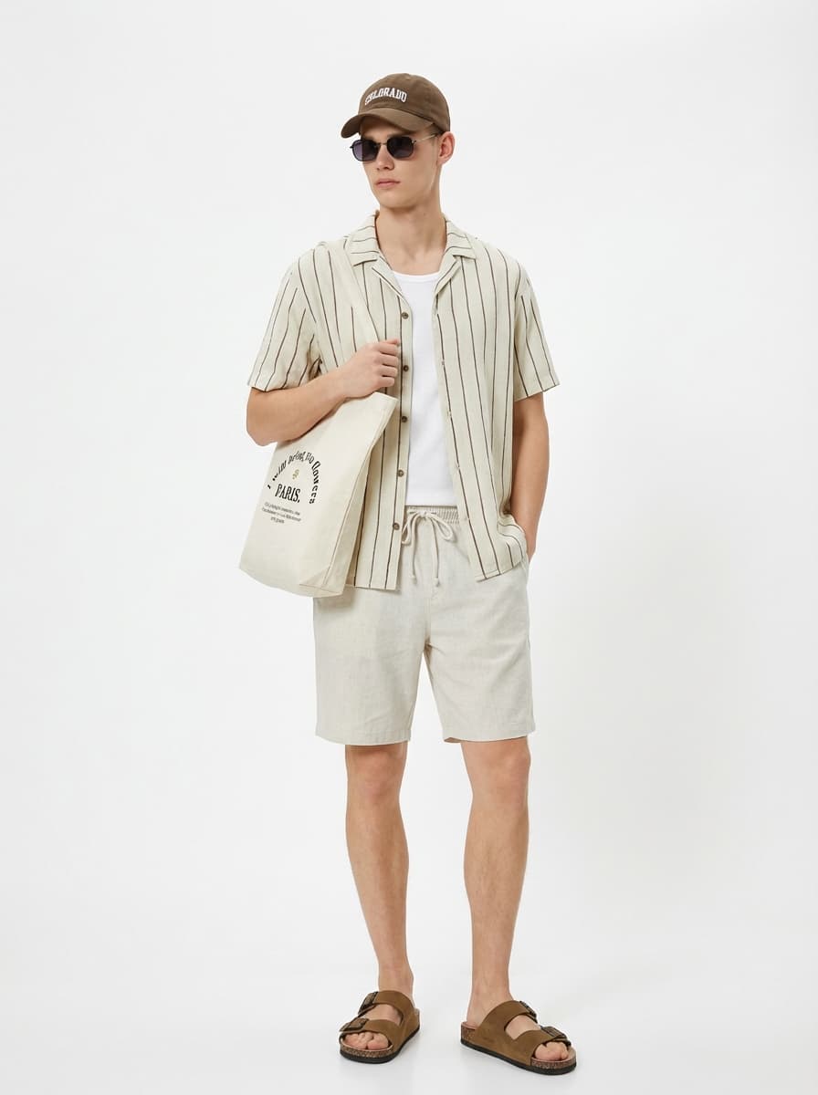 Шорты прямые льняные с поясом-резинкой на завязках
