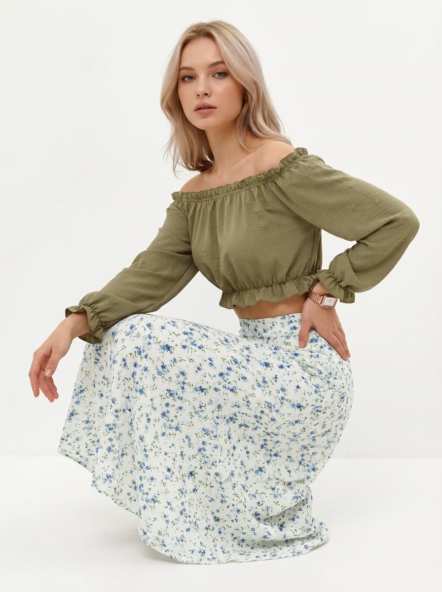 Летняя миди юбка и женские кварцевые часы — идеальный комплект для романтичных прогулок. Легкий шифон и изящные аксессуары создают нежное настроение и стильный образ на каждый день.