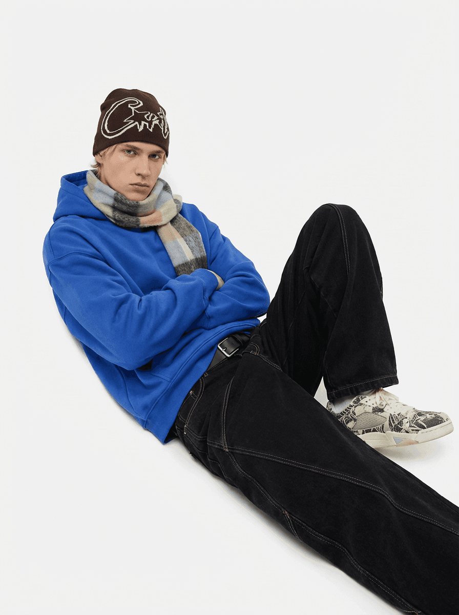 #мужской#синий#бежевый#серый#кроссовки#деним#уличная мода#широкие джинсы#y2k#стильный образ#повседневный стиль#багги#худи оверсайз#nike air jordan#шарф acne studios#шапка