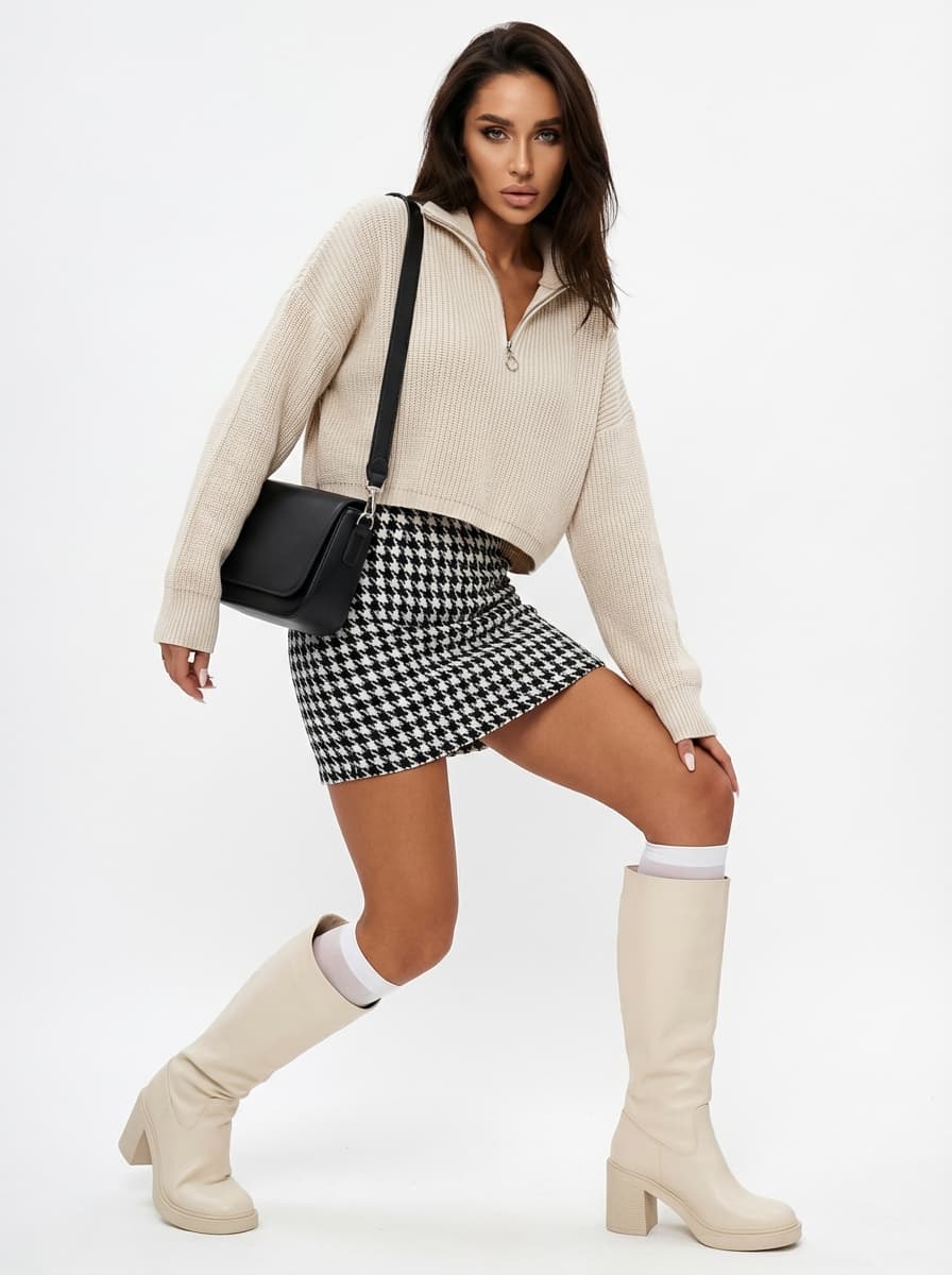 Свитер укороченный оверсайз с горлом на молнии вязаный