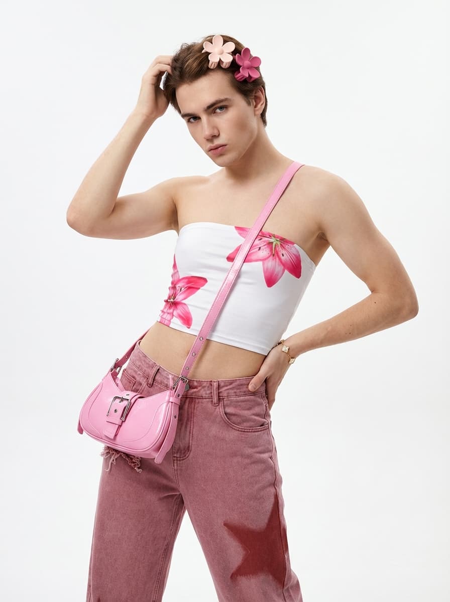 #летний лук#розовый образ#цветочный топ#прямые джинсы#женская сумка#браслет из халцедона#матовый крабик#романтичный стиль#одежда для девушек#модный аутфит#розовые джинсы#аксессуары для волос#стильный образ#весенний гардероб#повседневный стиль#наряд для свидания#яркий образ#топ с принтом#сумка на плечо#модные тренды
