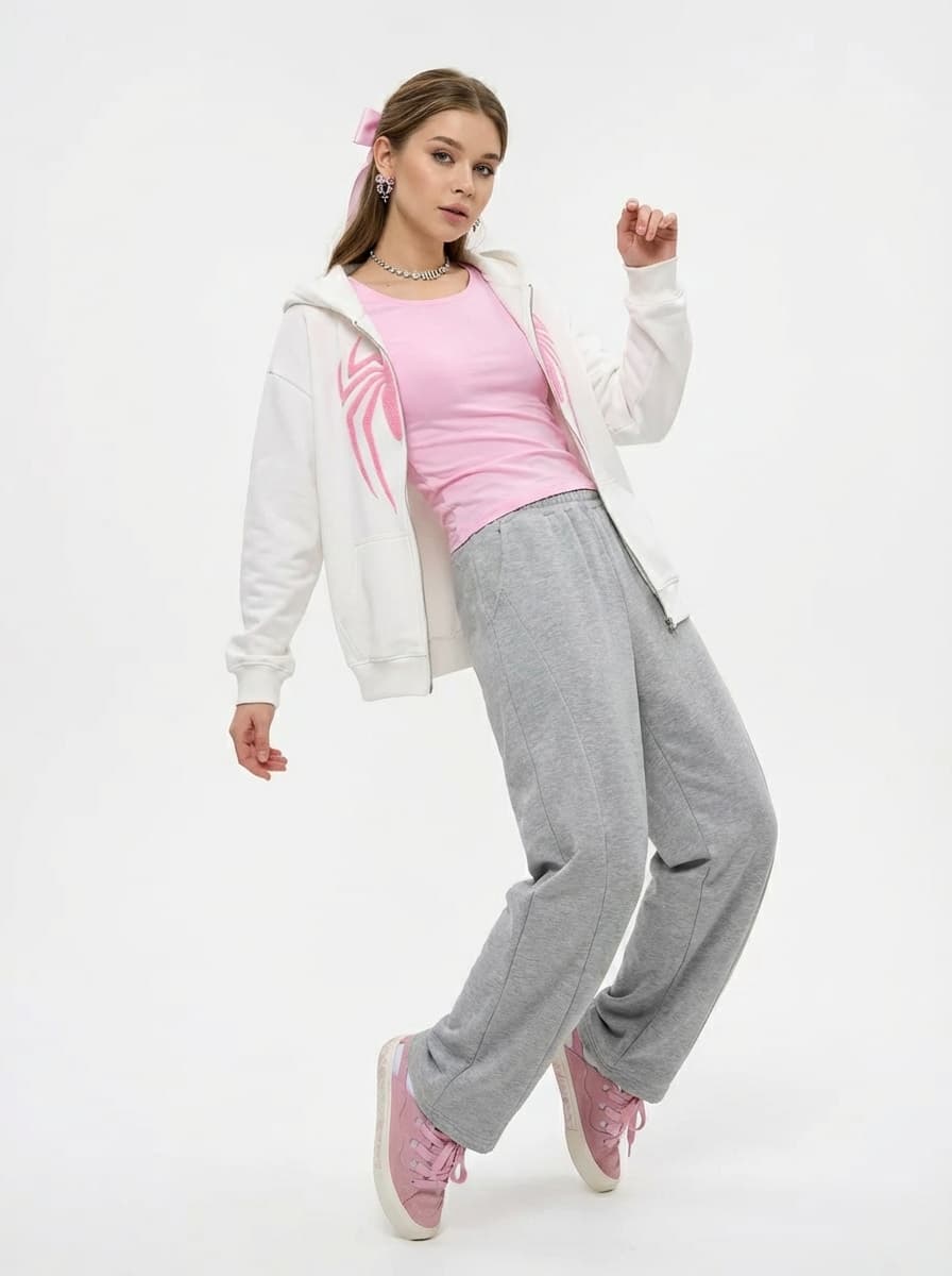 Розовый Streetwear аутфит с худи Человек-Паук и Y2K