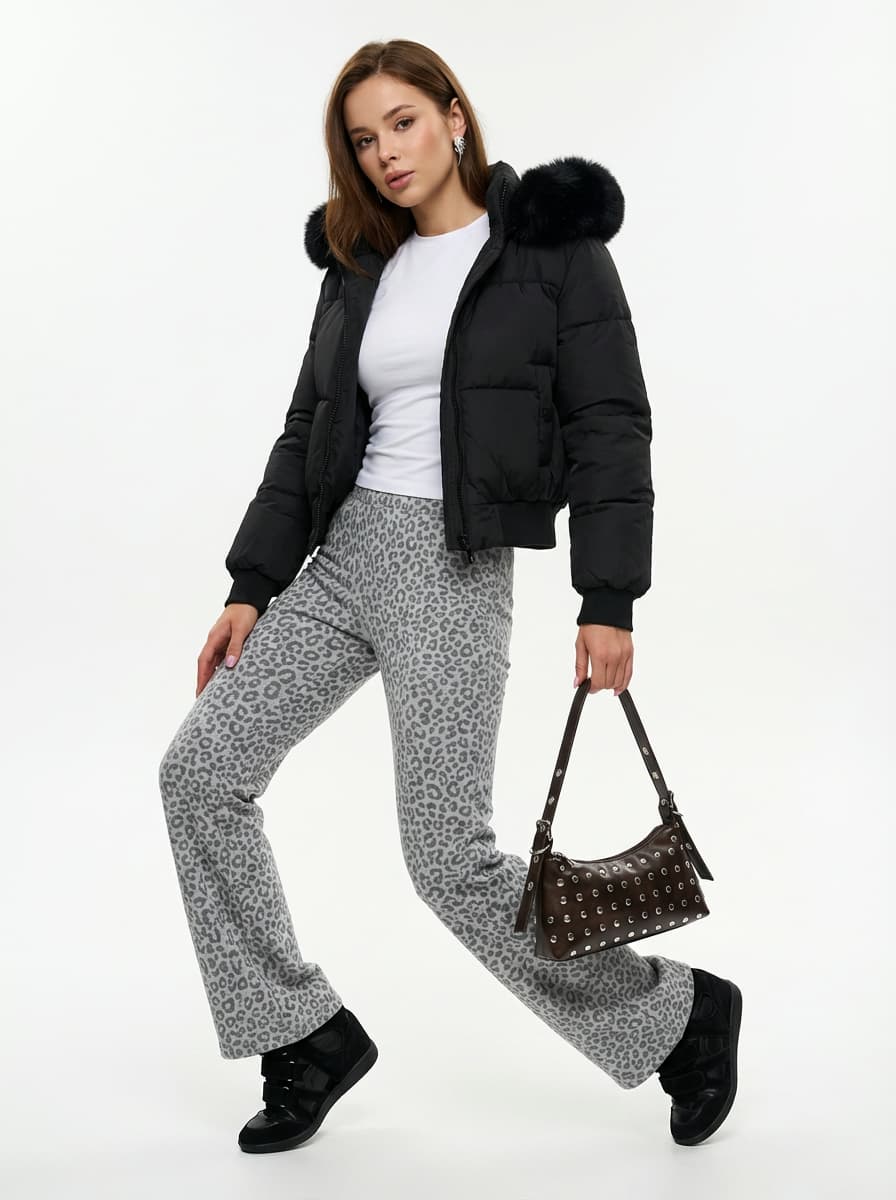 Спортивный шик: образ с леопардовыми брюками и курткой