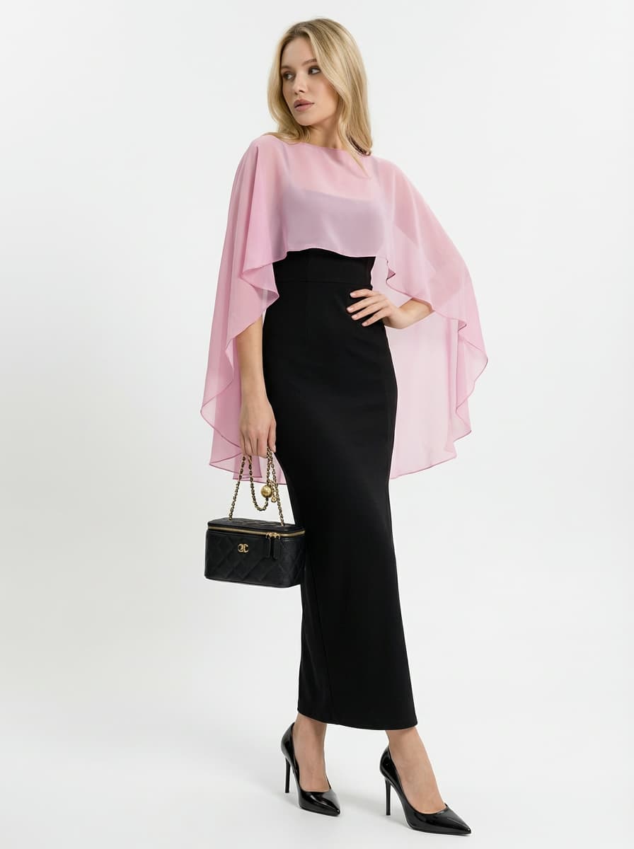 Вечерний образ с платьем лапша и накидкой Лебёдушка