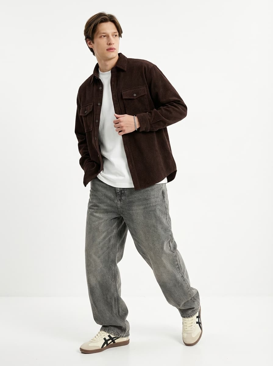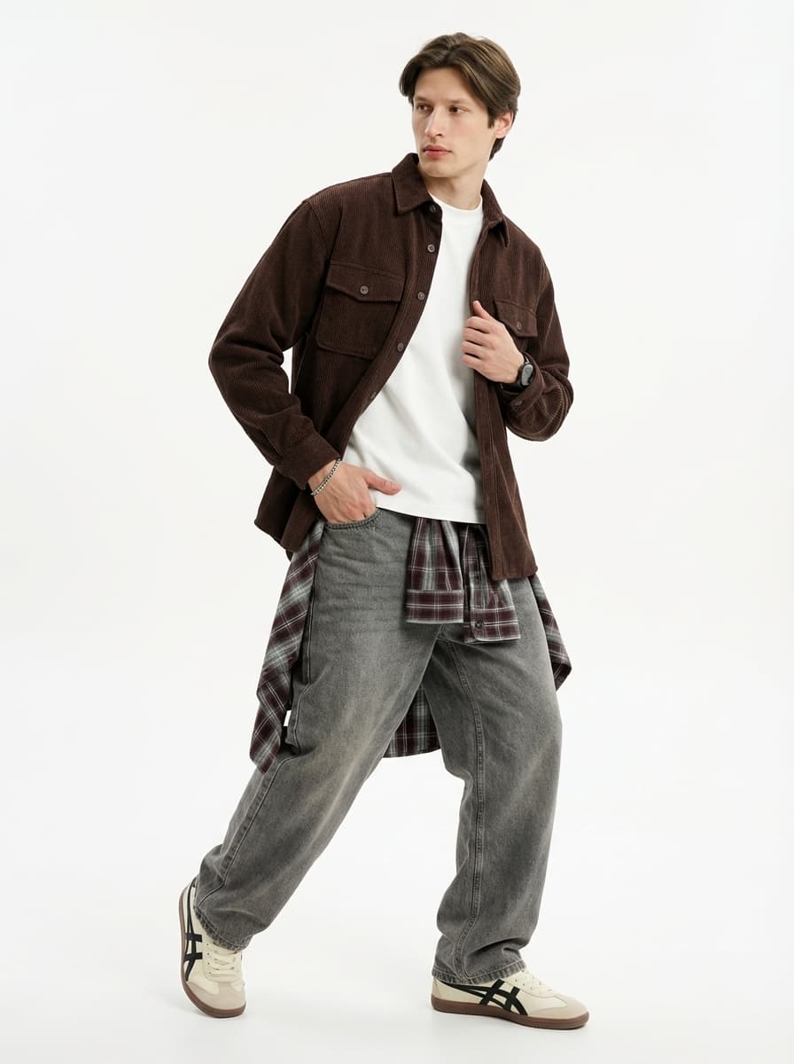 Винтажный стритвир: вельветовая рубашка и широкие джинсы