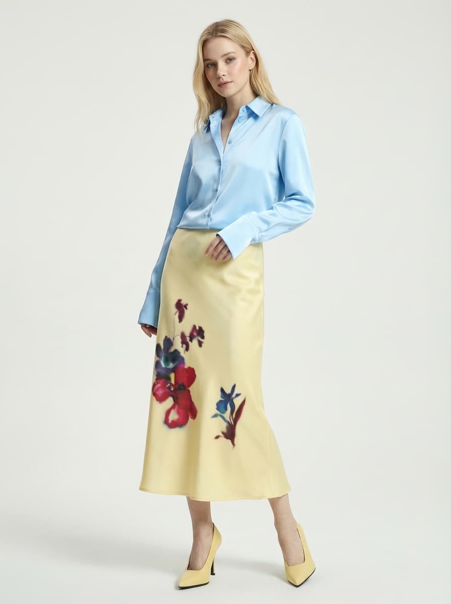 #женский#голубой#красный#повседневный стиль#элегантный образ#романтичный образ#весенний образ#юбка миди#атласная юбка#желтый#летний стиль#nume#цветочный принт#сатиновая юбка#юбка с цветами